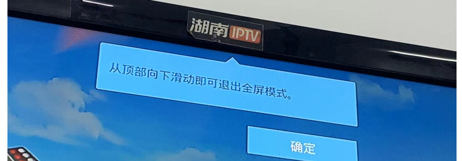 • 重现方式:之前认为是项目代码问题,但是打空包上传到IPTV大屏上就会弹出“从顶部向下滑动即可退出全屏模式”