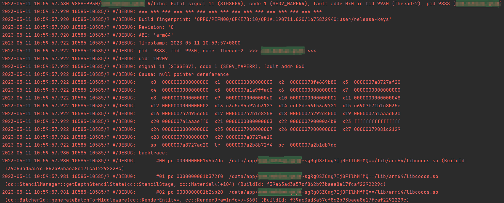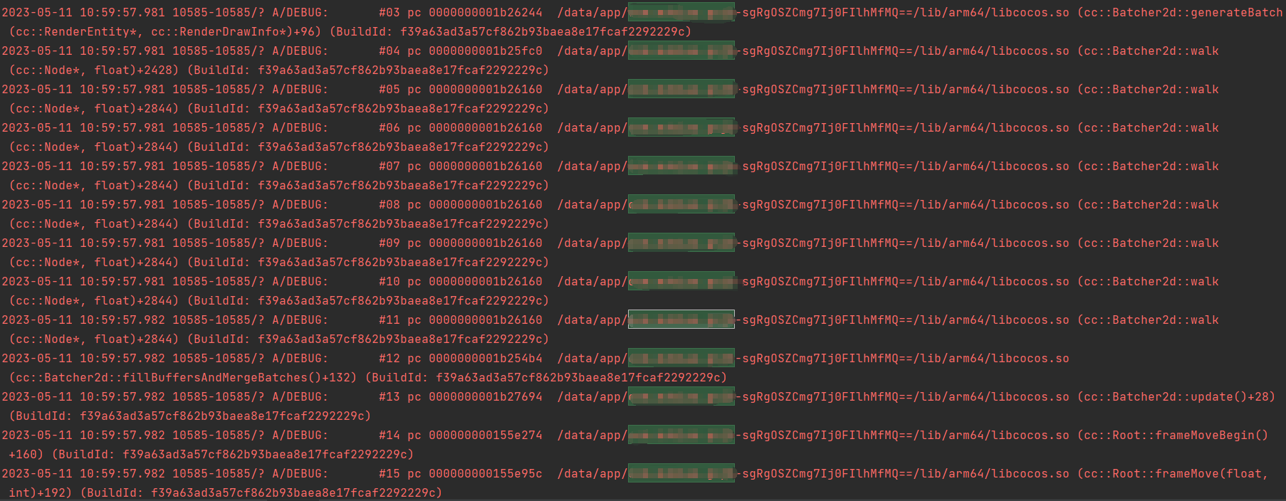 项目是塔防类型,在安卓studio上没ts相关的报错打印,只有一些正常的打印,我已经在战斗对象的创建、获取判断是否为空并且增加打印,但也没相关的输出,就直接报闪退了,请问这是哪里问题?通过addr2line定位内存地址,指向的地方还是看不出什么问题