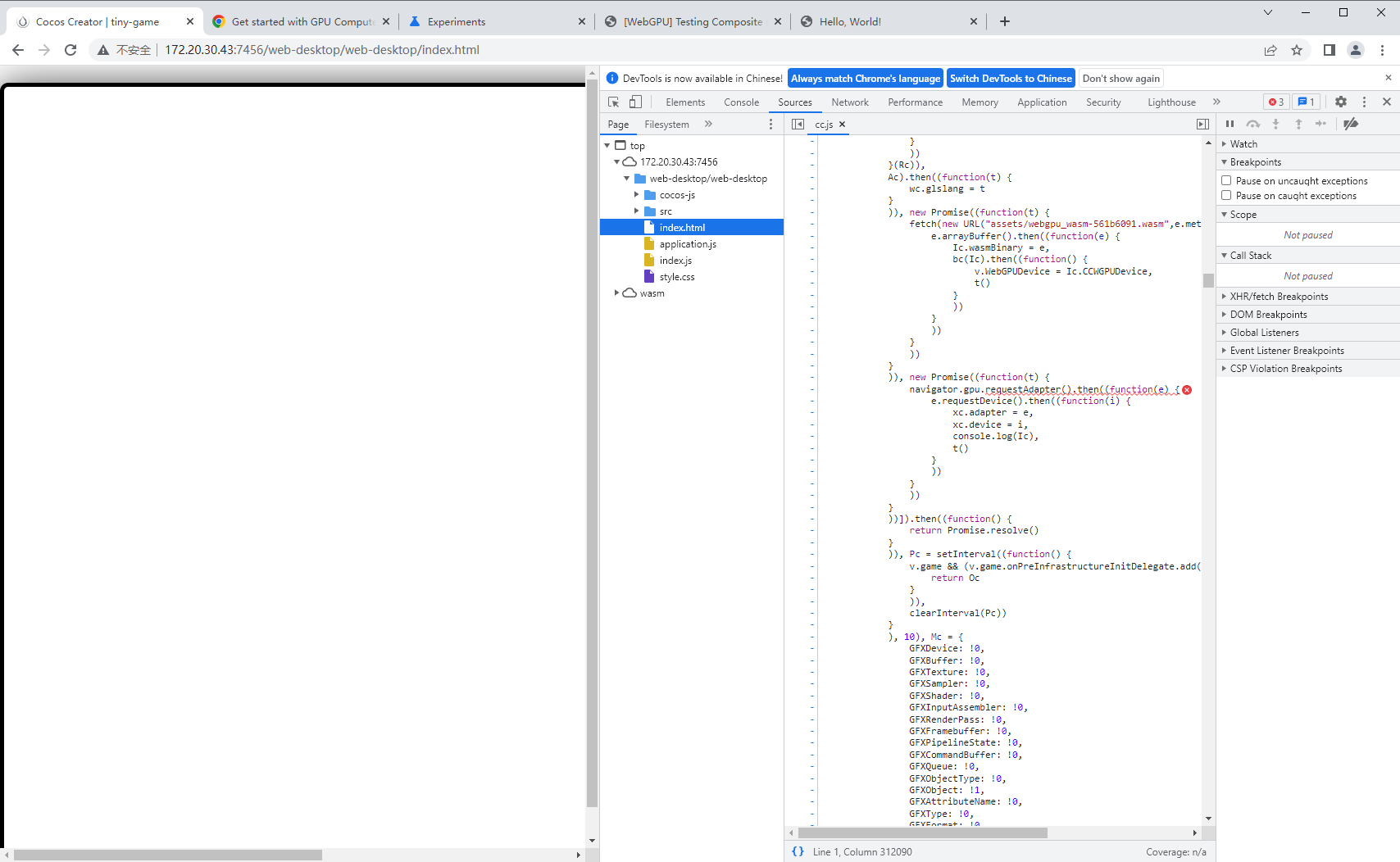 使用3.7.3导出项目,开启webGPU,在navigator.gpu.requestAdapter()中报错,调试发现gpu undefined