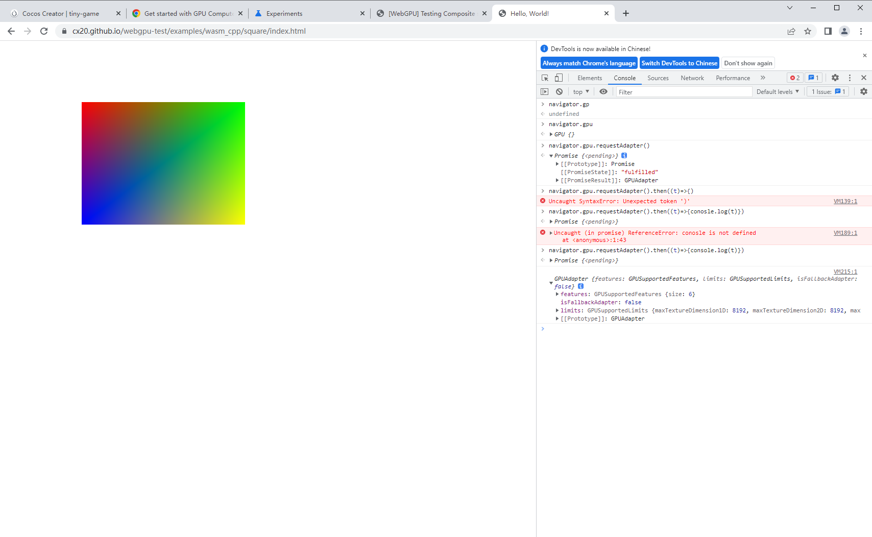 在其他测试webGPU的网站上可以正常使用