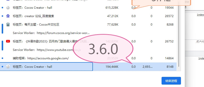 用3.6.0 web运行和3.7.2运行 占用内存对比(都是本地用谷歌浏览器运行)。为什么3.7.2 内存暴增
