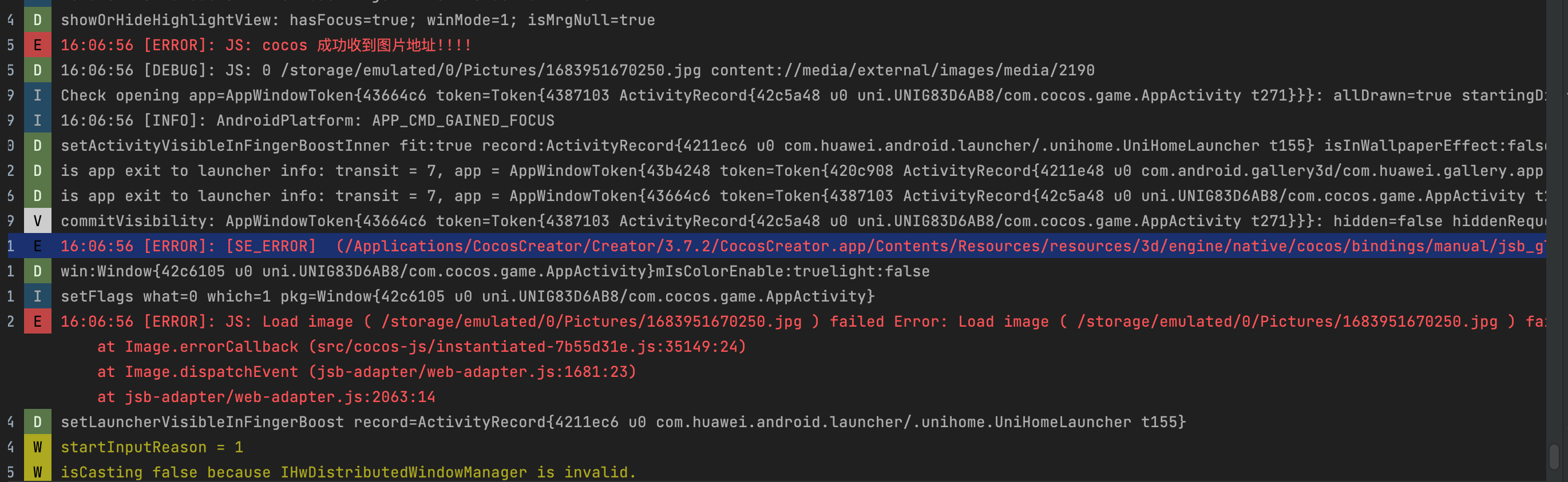 安卓端经过相册选择操作后调用了cocos上面的方法,并传回来绝对路径后,打包调试,发现assetManager.loadRemote加载报错,报错如下