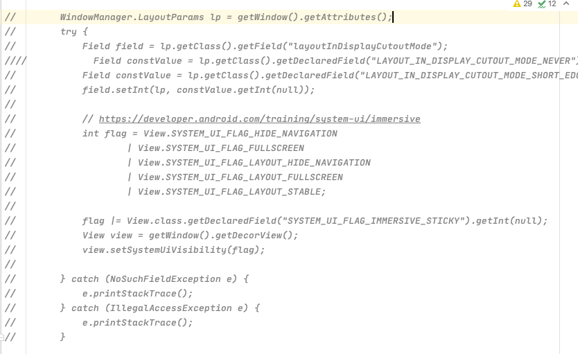 3.在setContentView之前添加 getWindow().setFlags(WindowManager.LayoutParams.FLAG_FULLSCREEN, WindowManager.LayoutParams.FLAG_FULLSCREEN); 设置显示状态栏
