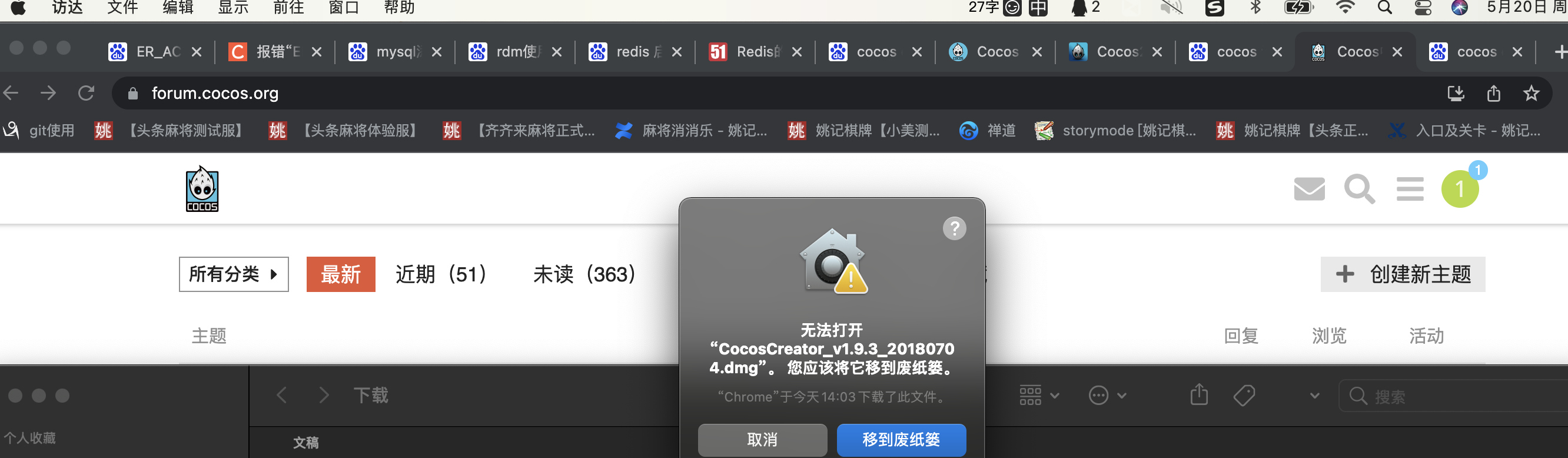 好像不行 , CocosDashboard 是已经安装成功的 但是我想装1.9.3的编辑器 dashboard里找不到,只能官网下载, 双击 1.9.3.dmg 或者打开都不行 都是直接弹出上面无法打开的提示 ,没有权限提醒