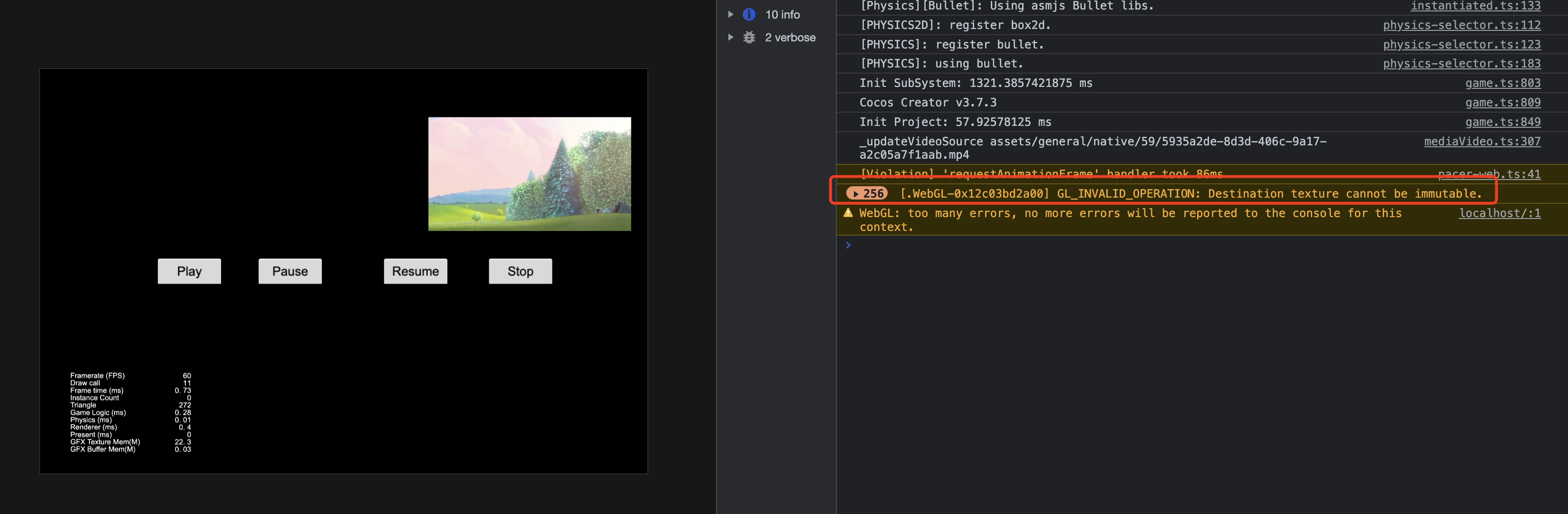重现方式:VideoTexture解决方案 升级到3.7.3版本后,处理完ModelComponent后,运行