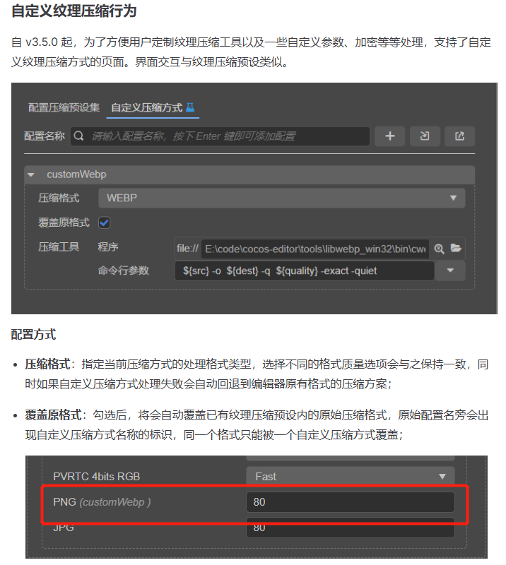有一个思路,就是纹理压缩不要选png。 比如我只选择了astc,如果需要原始图片的,自己写一个批处理,利用pngquant来压缩png,利用jpegoptim来压缩jpg,压缩完成后,把文件拷贝到原来纹理的位置,比如有一个uuid.md5.astc文件,那就对应有一个uuid.md5.png(jpg)文件。
