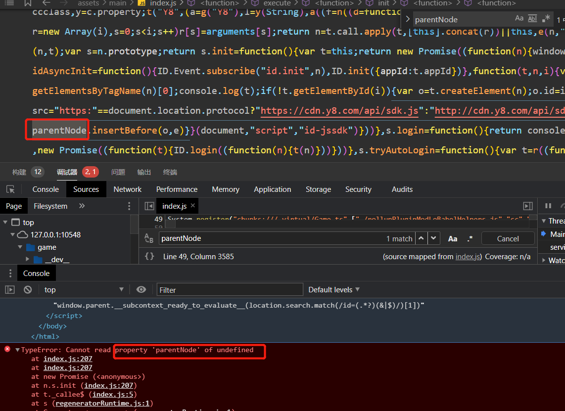 构建发布微信小游戏,微信开发工具中报错