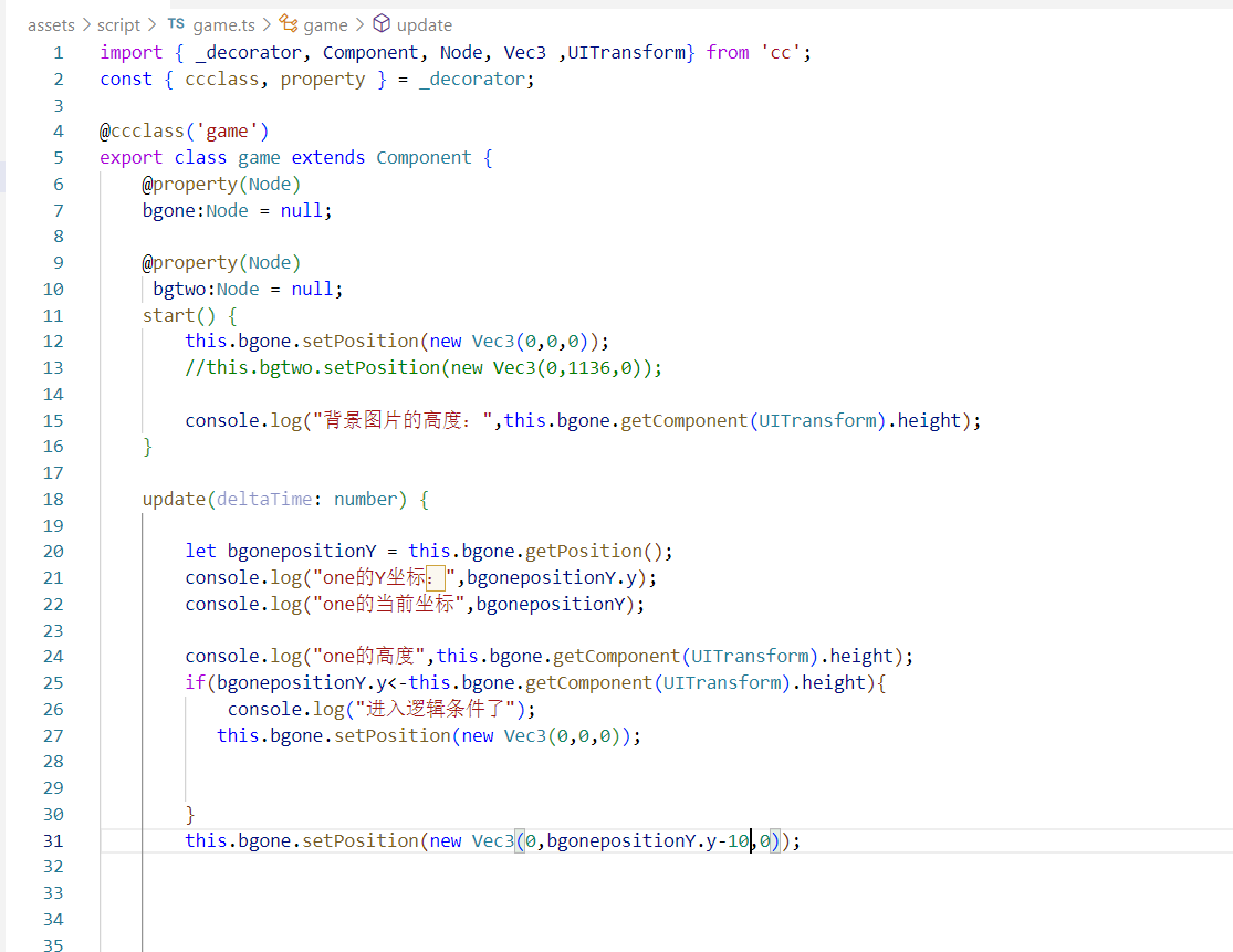 问题是你最后设置坐标用的是局部变量bgonepositionY,当重置坐标的时候这个变量没有更新