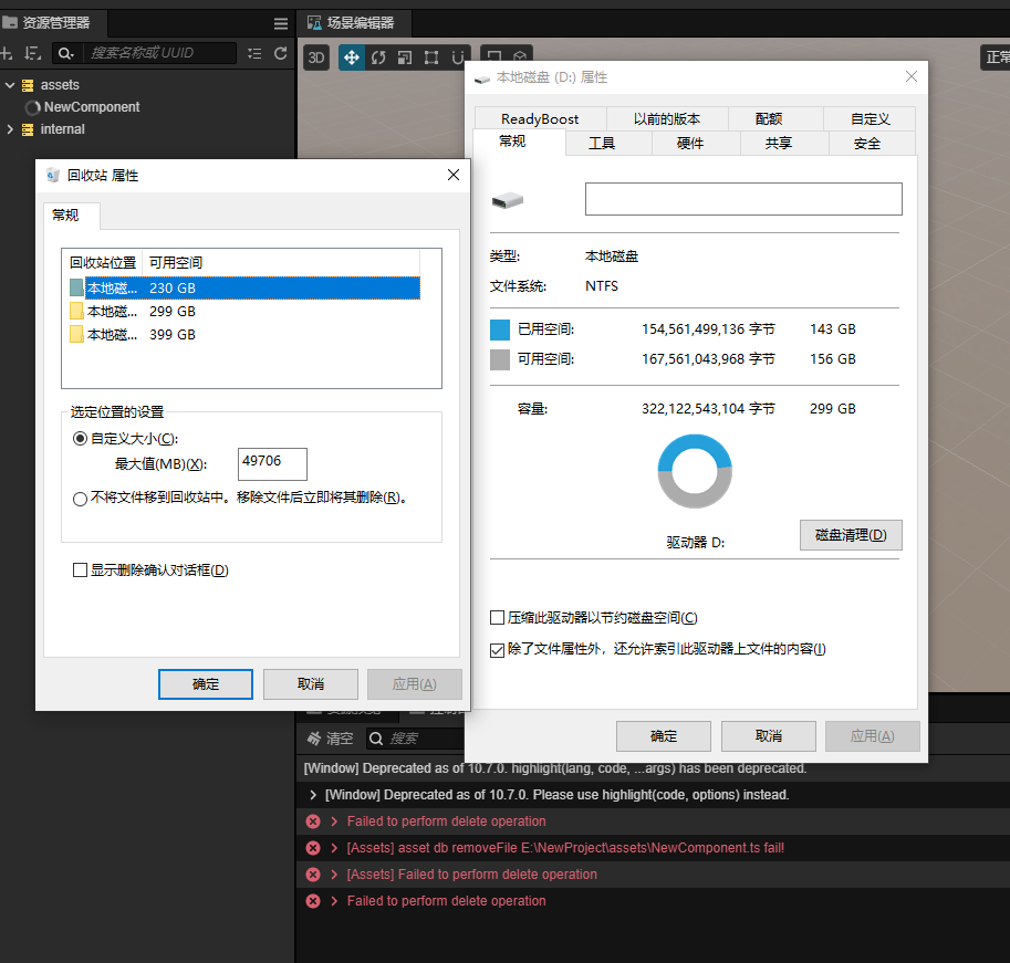 Electron 的 API trashItem 调用失败,试用管理员权限 + 命令行直接打开 xxx/CocosCreator.exe --project {项目路径} 看看,不要通过 Dashboard