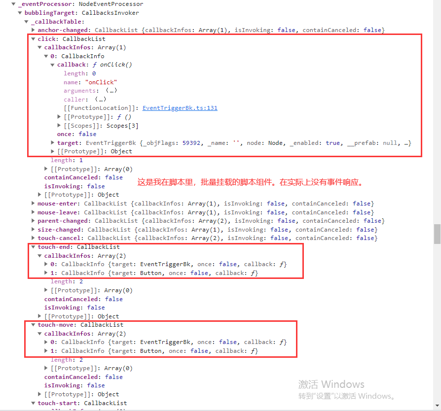 问题:我想遍历节点挂载脚本组件。脚本中注册了节点触摸事件。但实际上无效。单个挂载是正确的。 下面是直接在编辑器上挂载的组件: