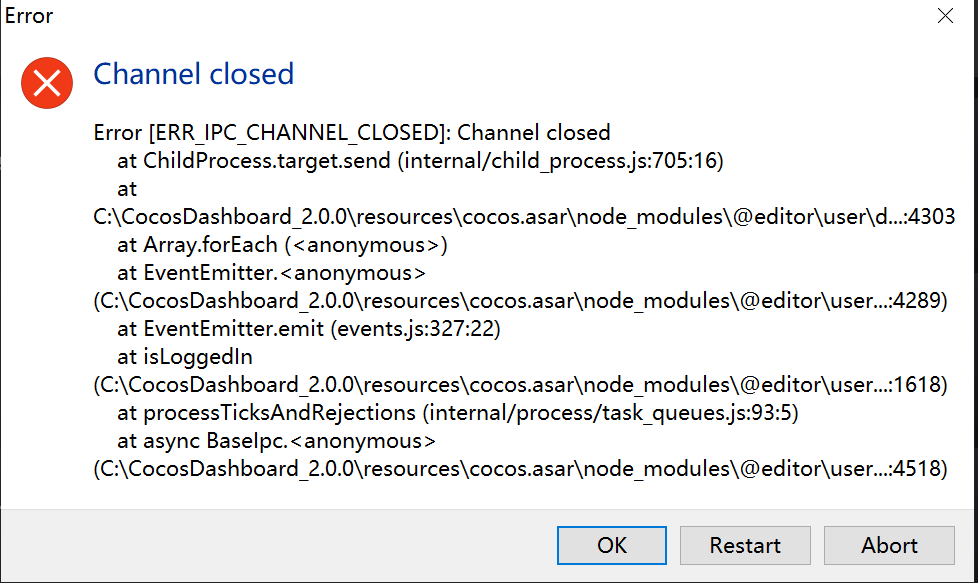 每次关闭项目都弹出错误提示“Error [ERR IPC CHANNEL CLOSED]: Channel closedat ChildProcess.target.send (internal/child process,js:705:16)”,怎么解决?