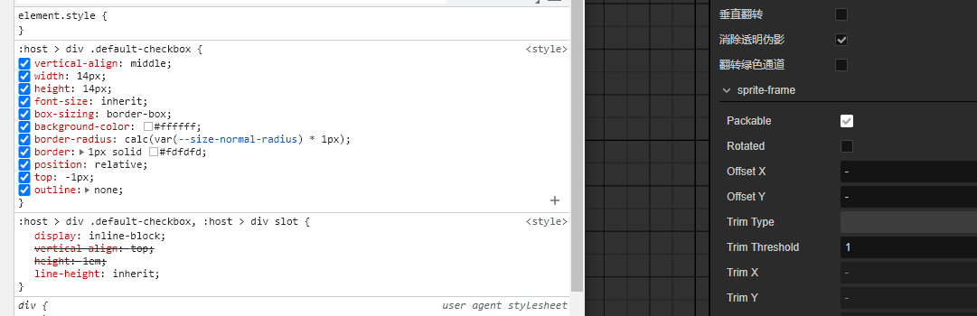 扩展面板里使用UI组件,比如这个checkbox,没法通过css改样式吗?试过了很多方式都不行