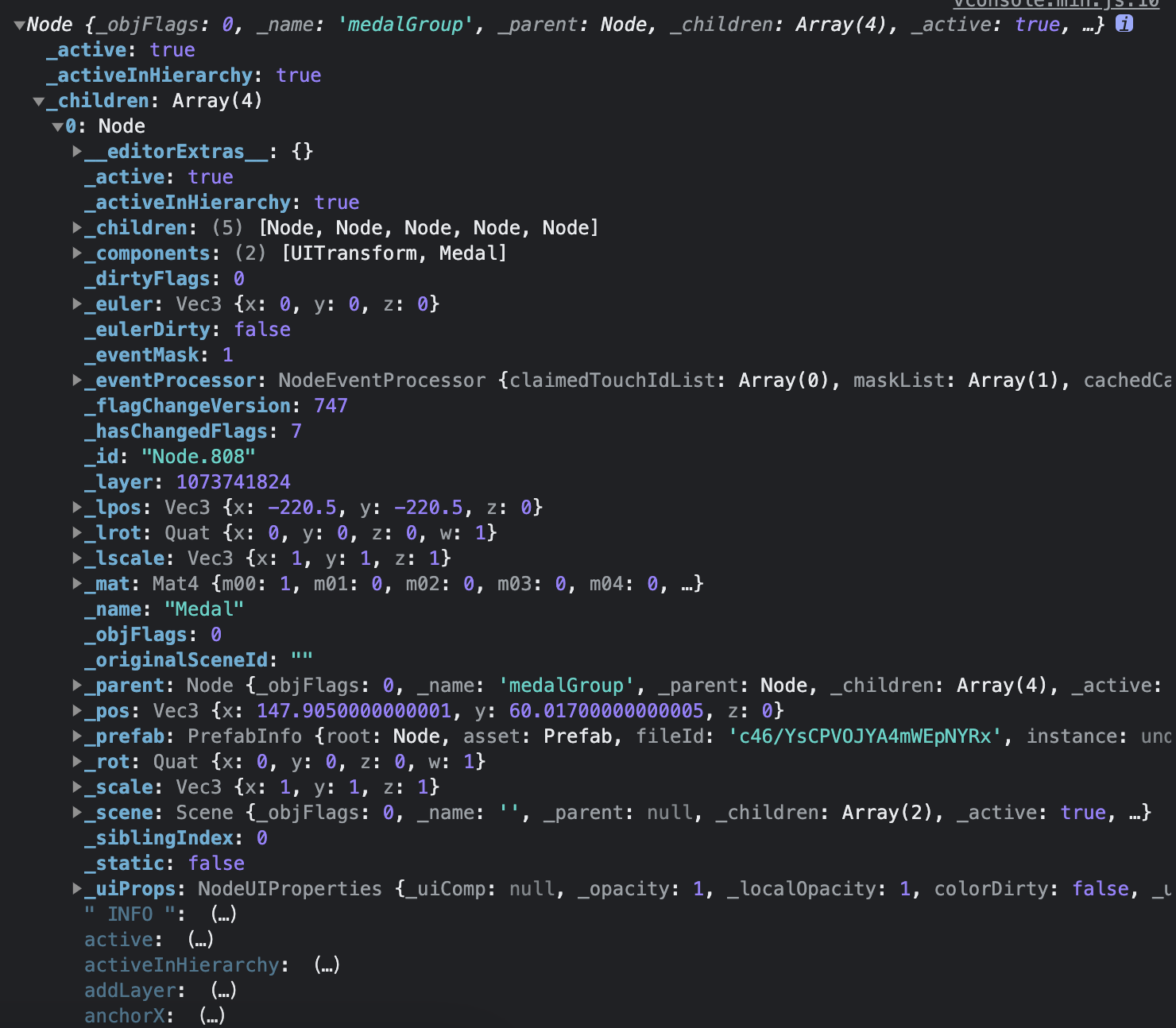 最后一个截图medalGroup的children长度为4,且你添加的节点层级为0