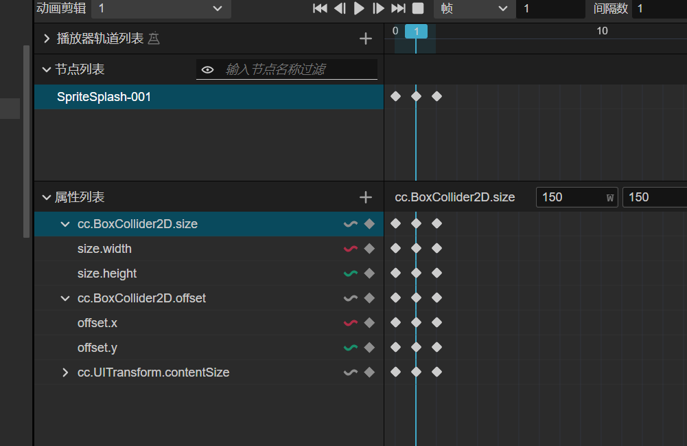 希望每一帧设置的size和offset都生效,需要在动画每次修改后调用boxCollider2D上的apply方法才会生效。