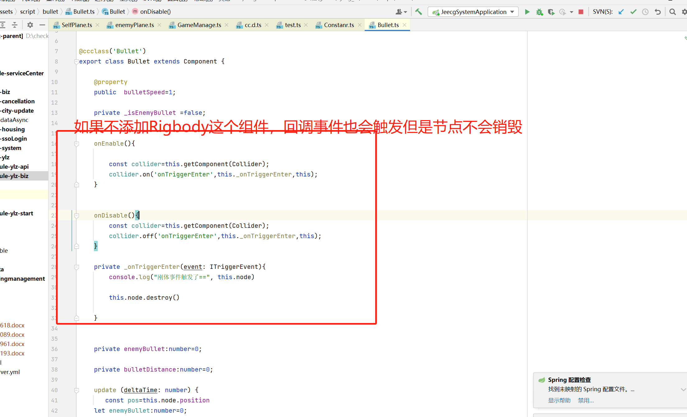 从文档来看,不加这个组件也能做碰撞检测,但是在碰撞检测的回调函数里面,我写节点的销毁,并不会生效,一定要引入RigBody 这个组件才行