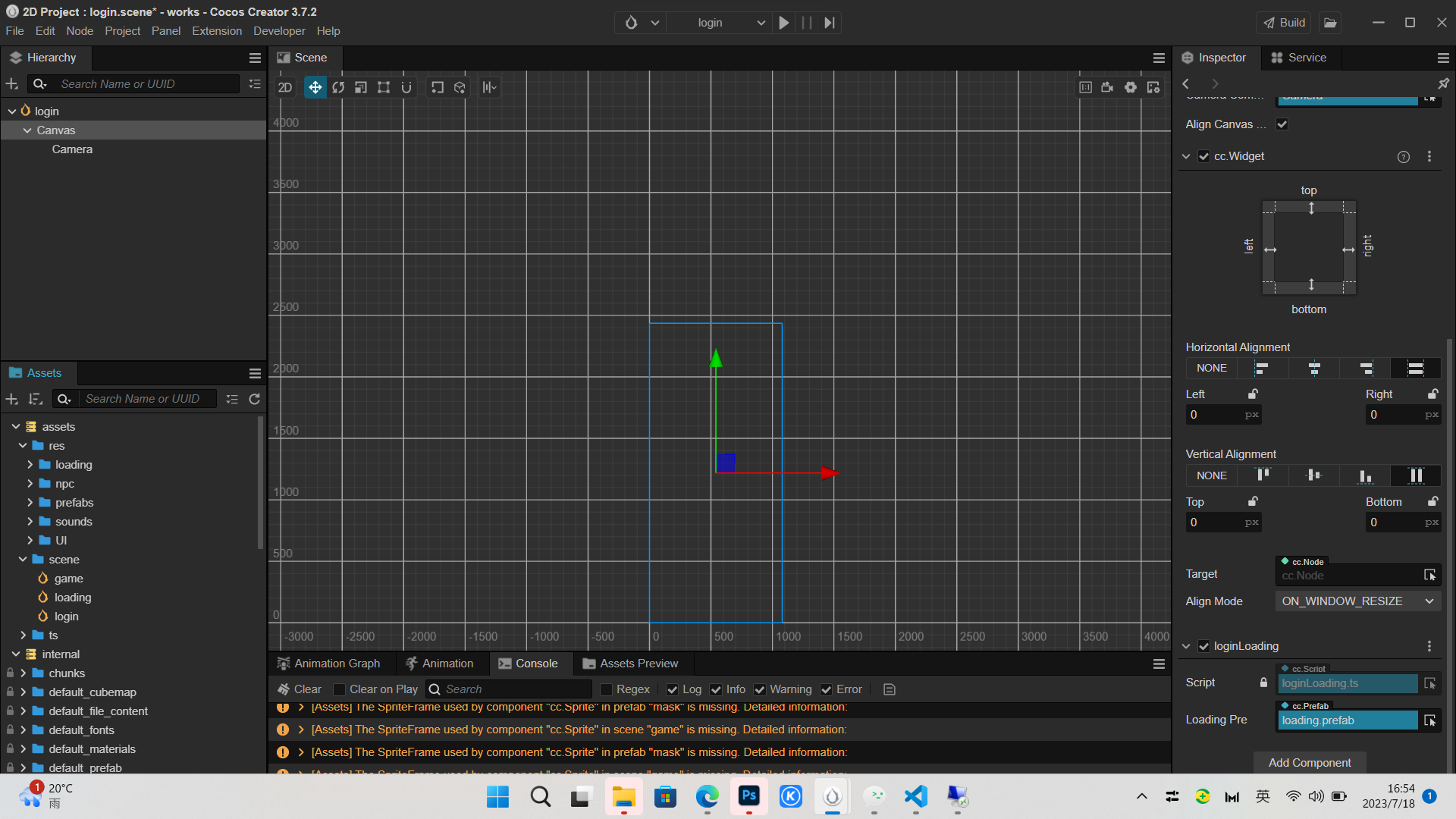 我的login是空白的,就一个canvas,然后实例化res中的一个预制体,加到场景中的。