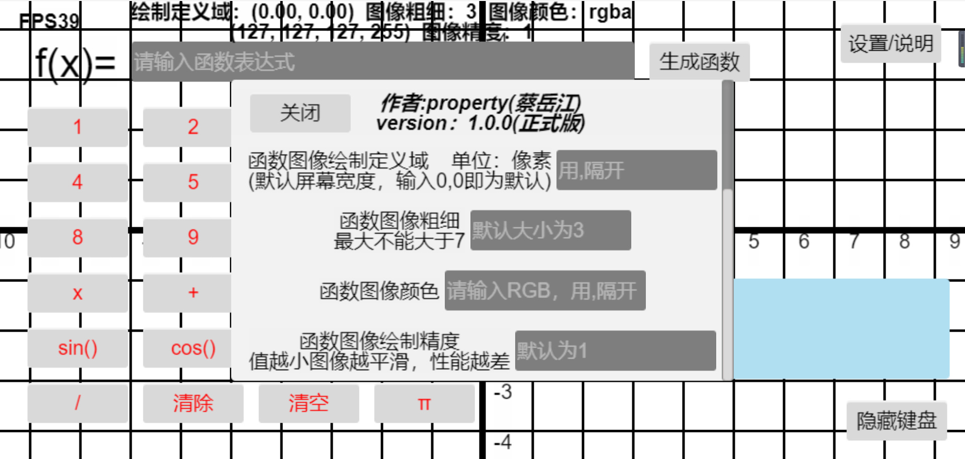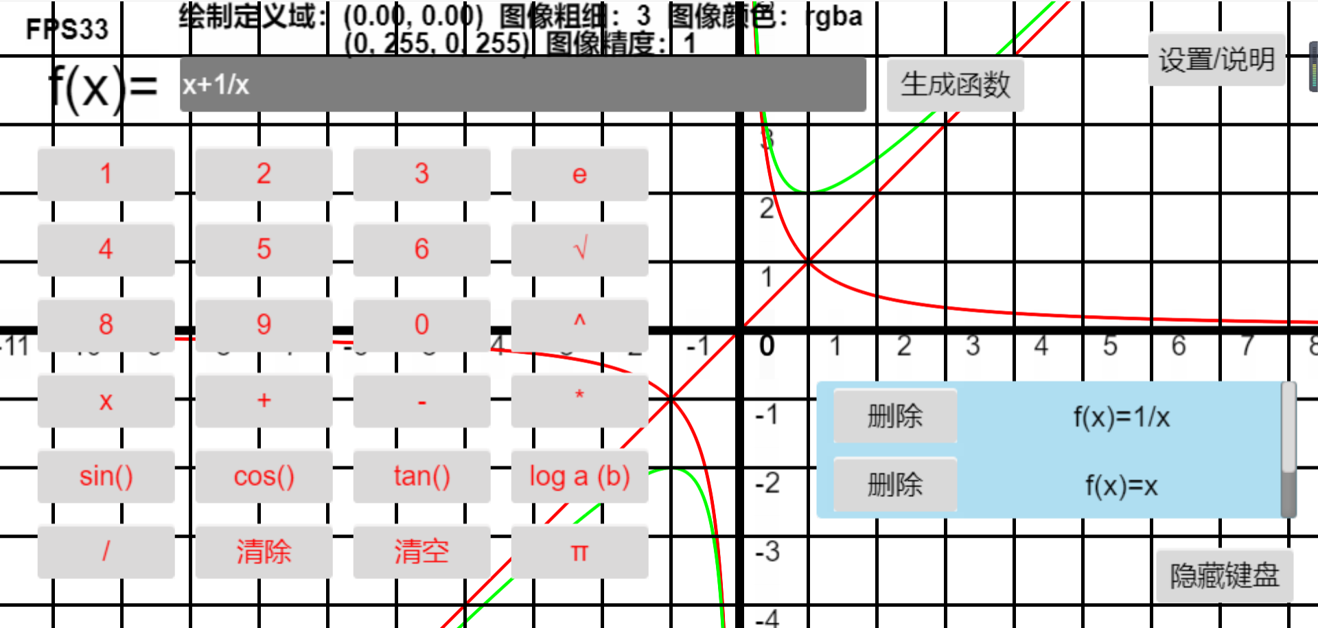 因知识有限,目前仅支持指数函数、幂函数、对数函数和三角函数等等,等高二学完选择性必修会考虑更新添加新功能