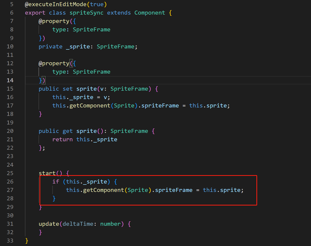 组件功能:编辑模式下调整该组件的 sprite 属性时,同步修改 Sprite组件的 spriteFrame 属性。