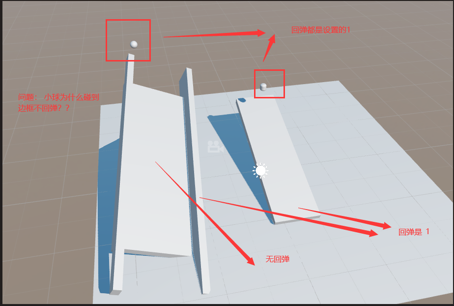 回弹是1的物理材质是同一个。 包括小球和胶囊体。