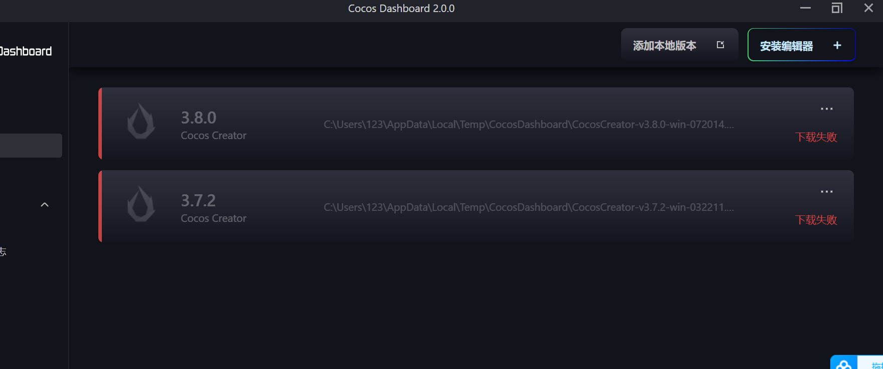 我开始时注册cocos账号后下就不可以(下了很多次,现在可以了,不知道是不是服务器那边审核才能下的导致bug(猜想)),谢谢。