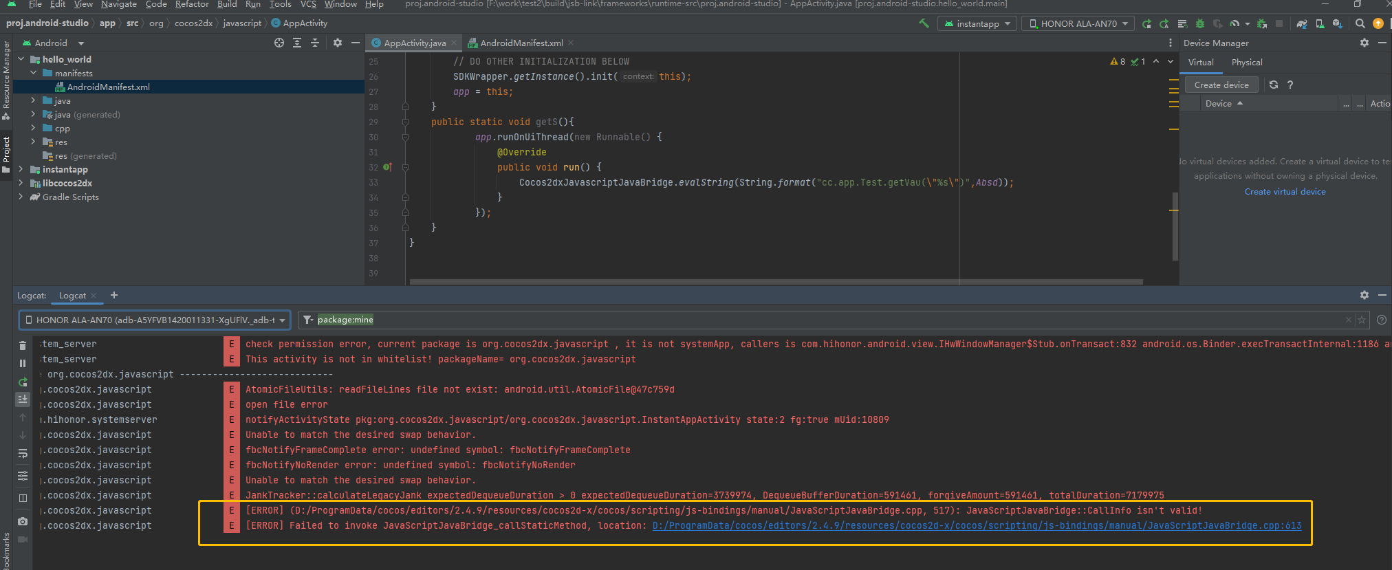 [ERROR] (D:/ProgramData/cocos/editors/2.4.9/resources/cocos2d-x/cocos/scripting/js-bindings/manual/JavaScriptJavaBridge.cpp, 517): JavaScriptJavaBridge::CallInfo isn’t valid!