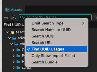 资源面板点击这个,然后输入 uuid