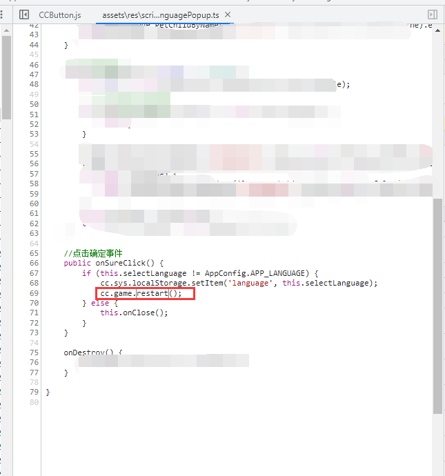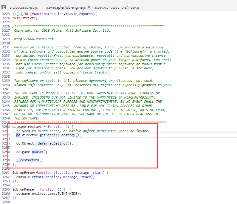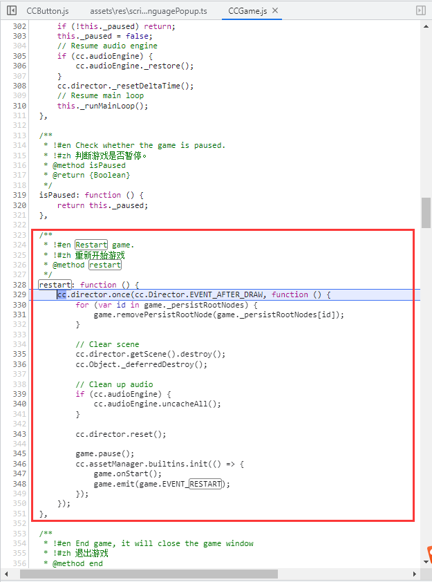 重现方式:点击按钮,按钮调用cc.game.restart会导致报错!