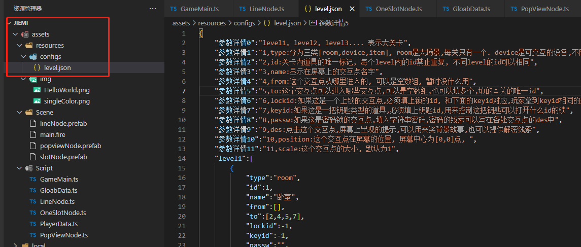 比如给毛毯加个lockid:3,拿到剪刀才能剪开,床头柜除了纸条1还有一把剪刀,剪刀的type:item,keyid:3,这样就能看到了纸条1后才有机会拿到纸条2,才能知道衣柜的密码是13096/2=6548.