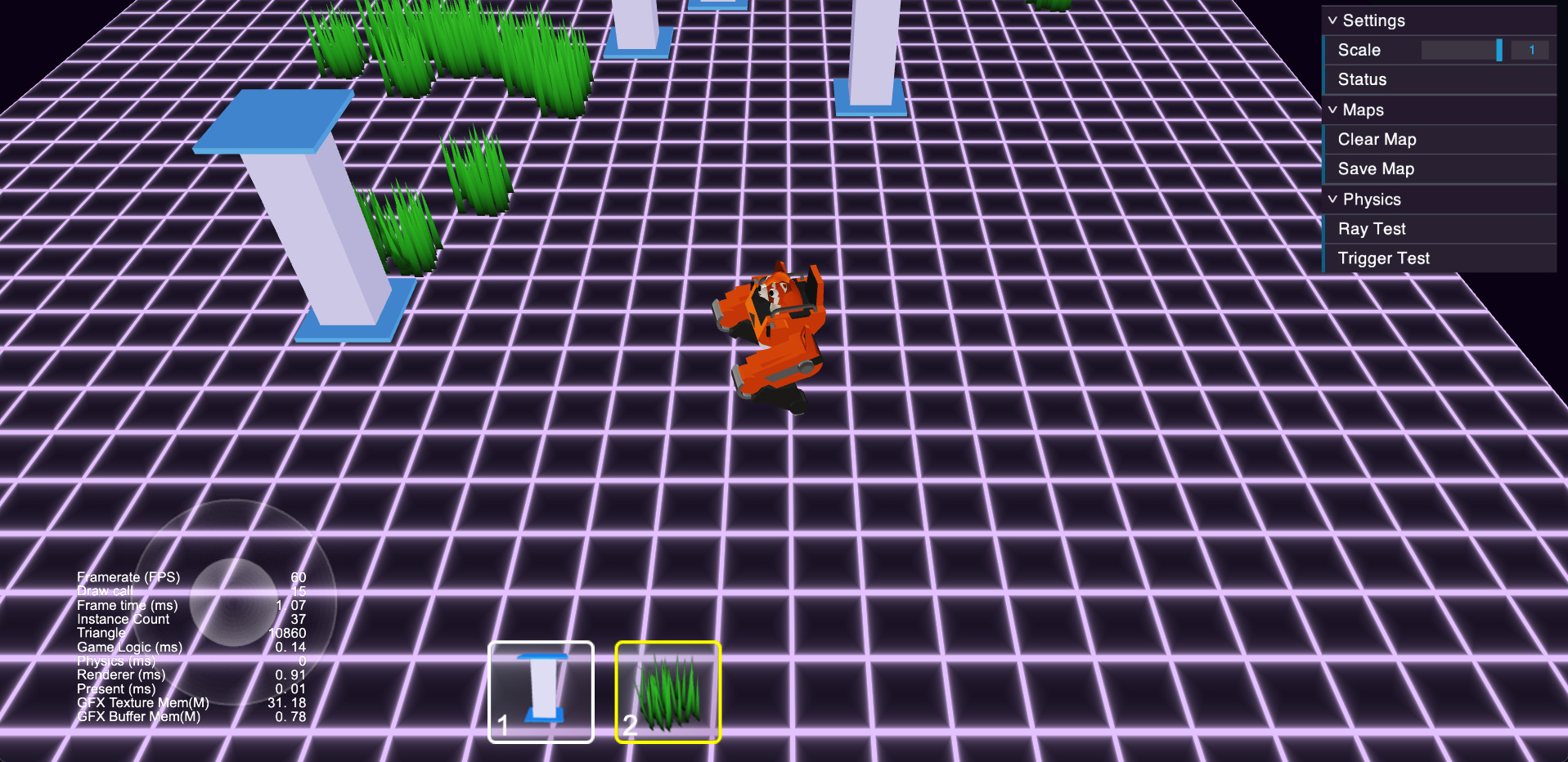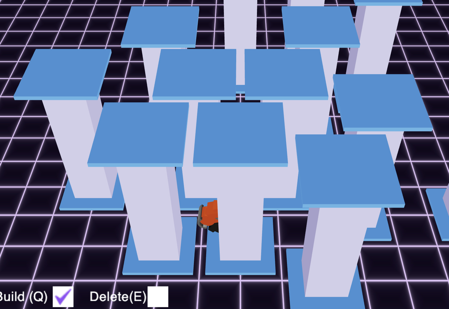 支持变移动变建造,支持1-9 数字快捷键,和Q/E 切换建造模式,会增加旋转物体的快捷键。