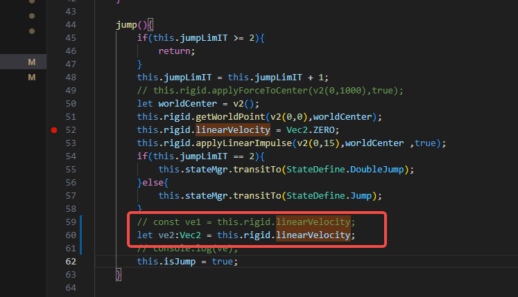 我真TMD是日了狗了,前面因为我要做二段跳,所以需要在第二次点击跳跃到时候,将linearVelocity设为0, 我使用的是将linearVelocity设置成Vec2.ZERO;这段代码就出了问题;所以老老实实的使用v2(0,0);就没问题了;