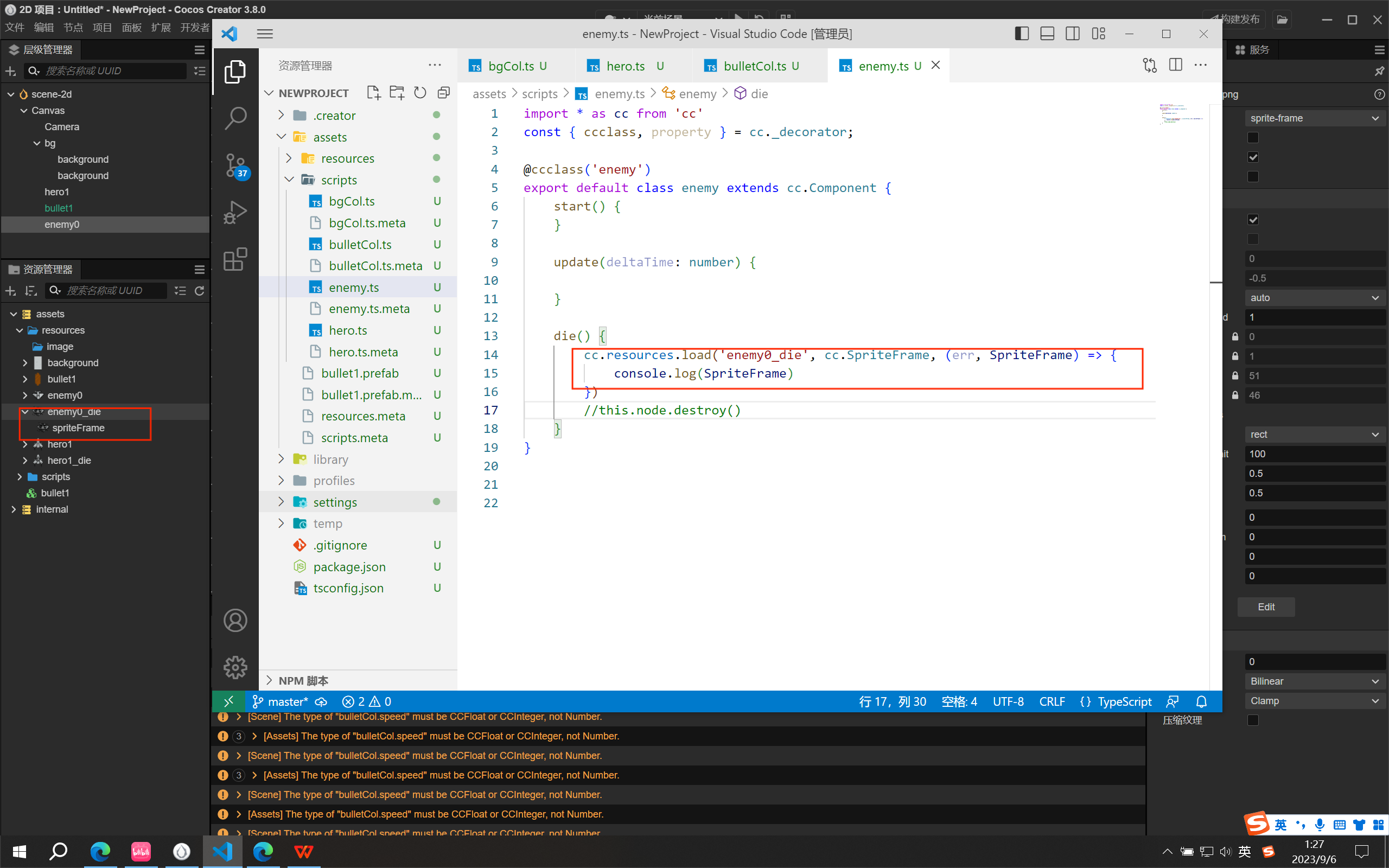 你加载 “enemya_die/spriteFrame”