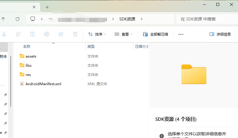 如果第三方sdk只有lib只需要只需要放在native\engine\android\app\libs下,然后app下的build.gradle引用就行,但有的第三方sdk除了lib还有assets和res,这时这两个文件该放在哪个路径下呢?. 第三方给的sdk资源如下