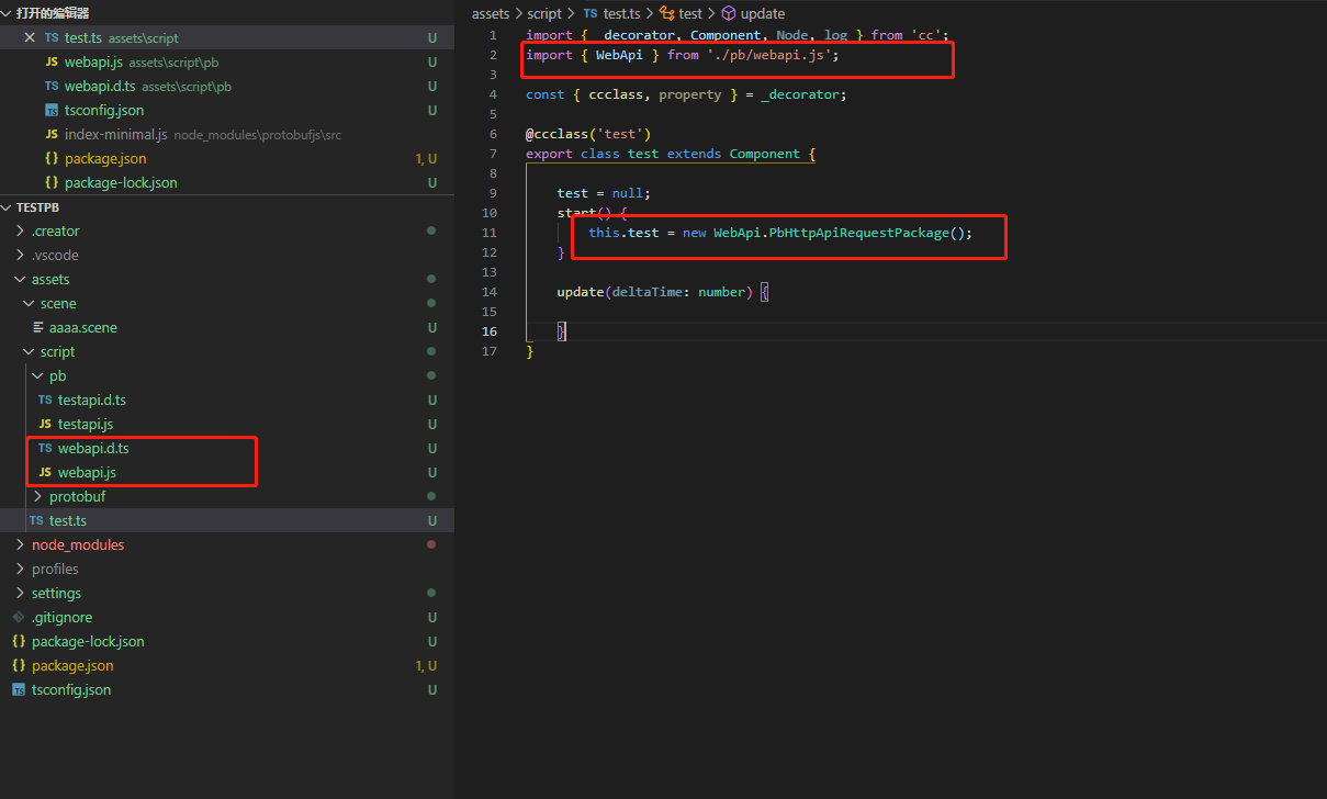 脚本中只要实例化pb生成的.js文件中的对象就会编译失败