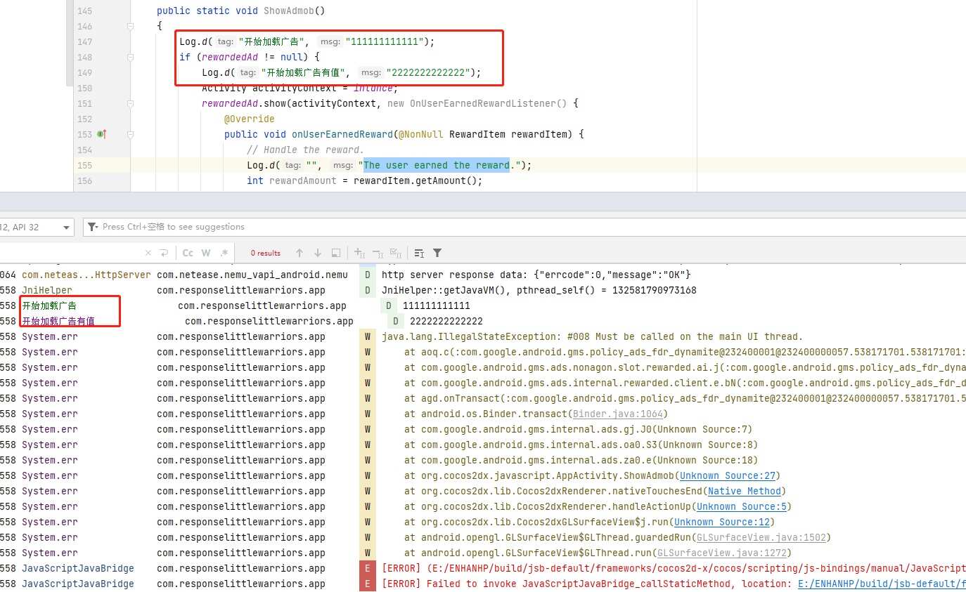 把观看广告视频的代码放 run(){ 这里 这里 这里} 就好了