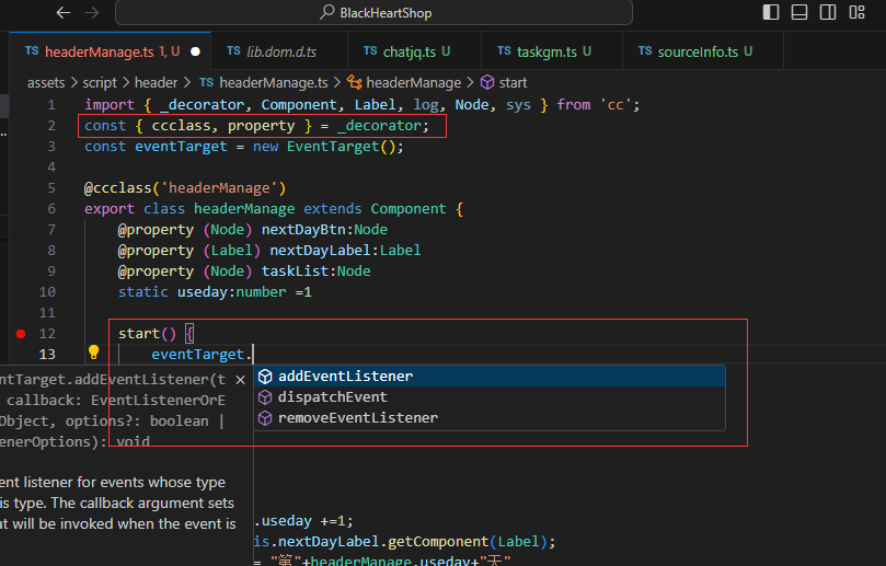 抱歉,我看错了,是由于我少引入了一个EventTarget导致的问题