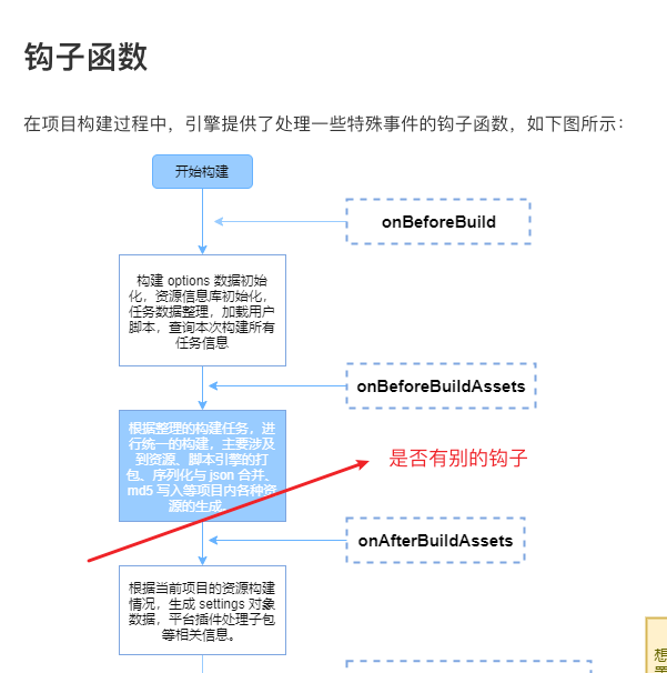 目前有个需求,需要再远程包资源打包成zip之前进行纹理压缩,目前测试下来onBeforeBuild的时候对应的文件还未生成出来,而在onAfterBuildAssets的时候资源已经被压缩成zip文件了。想知道在onBeforeBuild与onAfterBuildAssets直接是否有更多的钩子函数可以使用