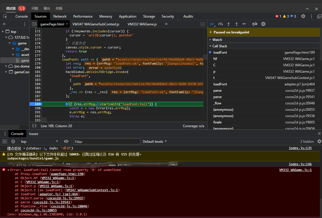 小游戏上部分字体包加载失败