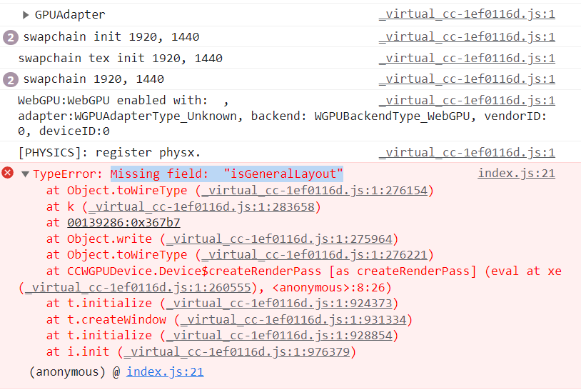想体验下webgpu的差异,但是起了官方cyberpunk和商场的3d项目,构建后都出现这个错误,我是build完了放到nginx跑的,麻烦高人指点,编辑器版本3.8.0