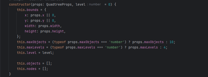 - maxLevels 表示层级,一般设置为4级 通过 maxLevels 和 maxObjects 算出可以容纳的最大数量为 10x4x4x4=640 一般的碰撞场景都可以满足 *