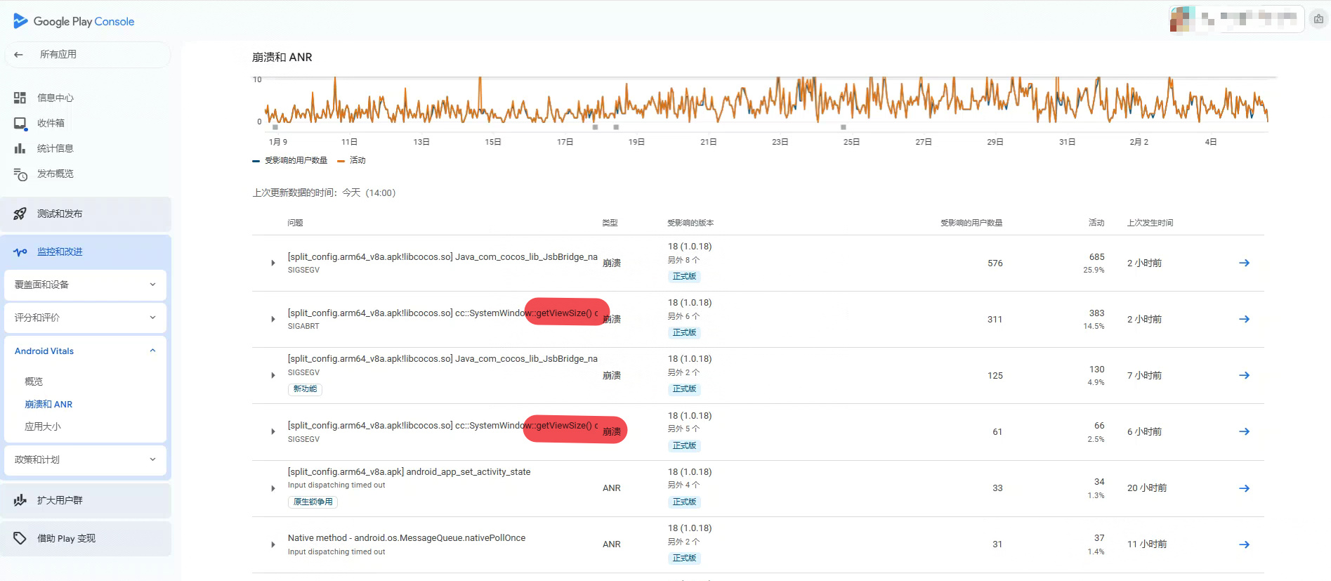 传说Creator3.7是一个较稳定版本,所以项目做了一个架构升级,由原来3.6.3升级到3.7.3,结果出现了底层大量相关getViewSize()的崩溃日志,报错如下