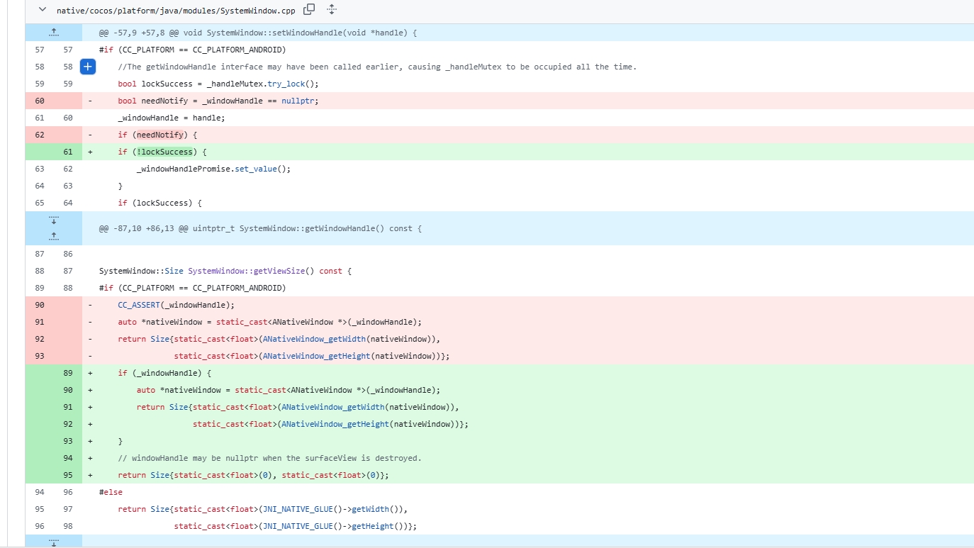 建议修改,第一个类没改的话,拿到的nativeWindow可能是一个失效的对象