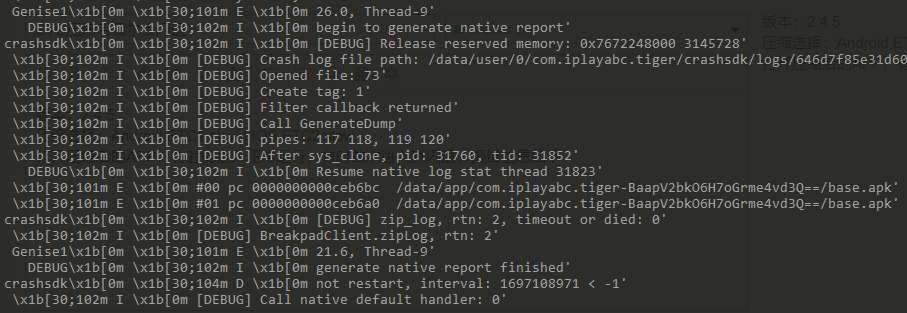 打开压缩后的APP,有时能进入正常运行,有时首次进入就闪退,报错信息如下