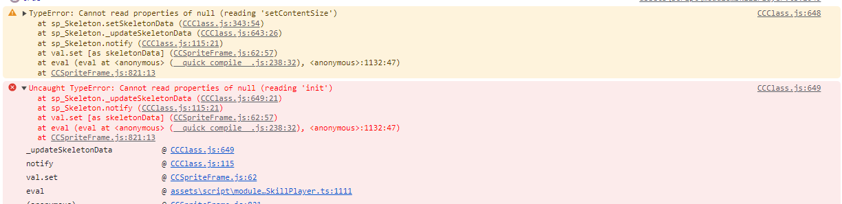 重现概率: 在骨骼加载的时候会报错,要是一个一个加载不会报错,但是有时候一下子要跟随好几个角色多次调用这个方法骨骼加载就会报init错,求帮助