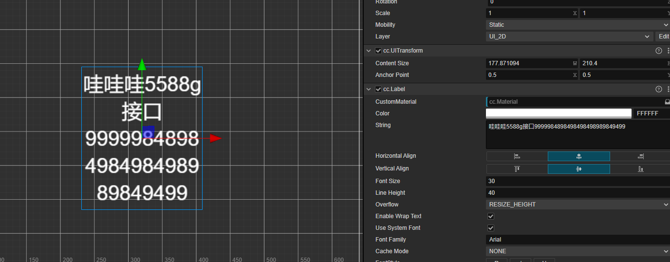 有一说一,你测的7版和8版字体大小都不一样(一个20一个30)…cocos这边应该默认把中文和英文数字归成两类了,要是当前行放不下就会挤到下一行去,要想完全按自己的要求换行(比如不超过一行的宽度的数字想让它中间截断)最好是老老实实加换行符