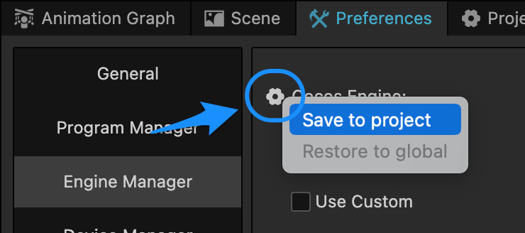如图2.x的项目设置里可以设置独立的自定义引擎