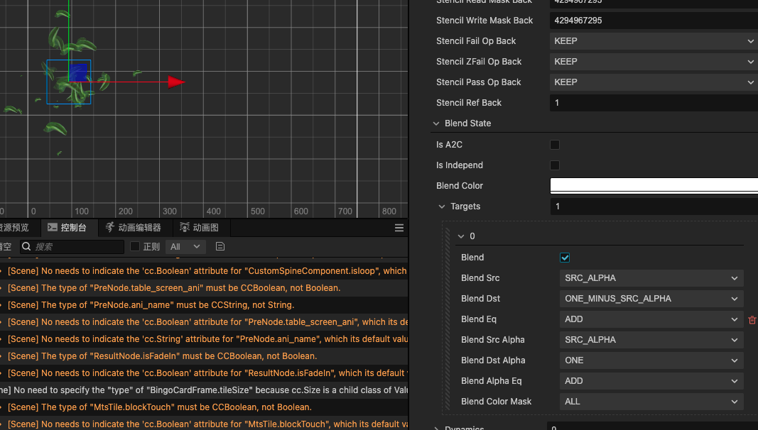 对粒子Reset一下或者新建Node手动添加Par2D组件,默认生成的火焰自带混合的,这个应该是是2D升级带上来的糟糕物没删掉。