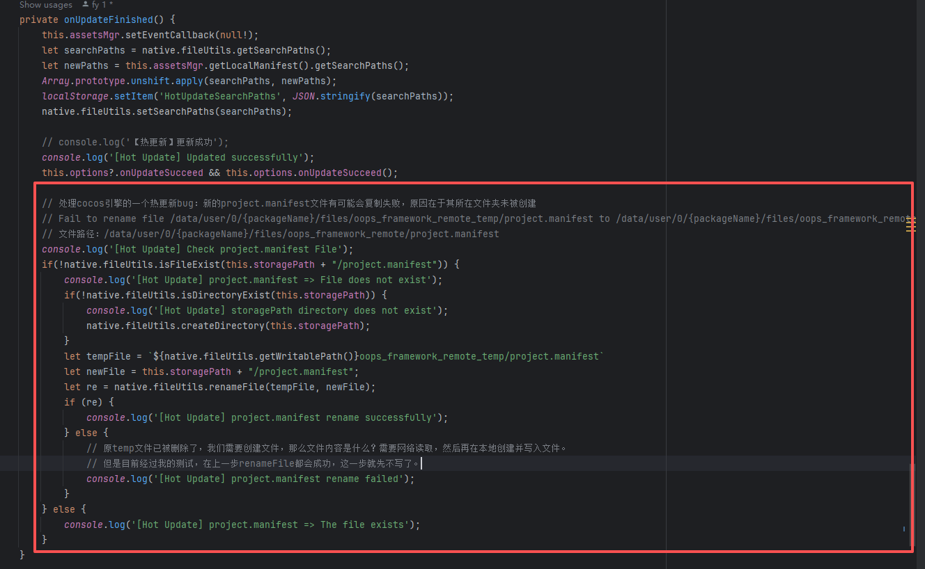 在AssetsManagerEx.cpp中的updateSucceed函数增加如下代码