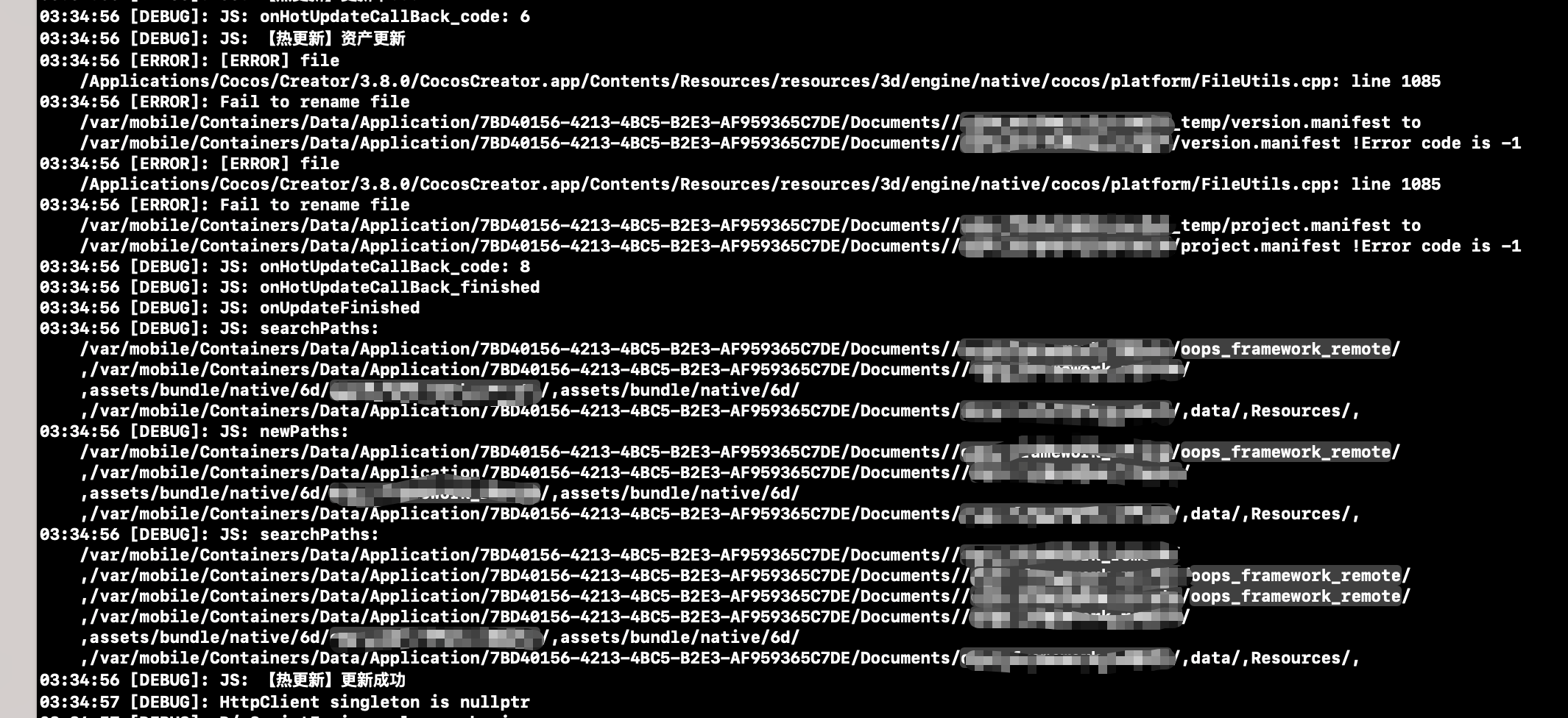 CC 3.8.0 构建后xcode真机运行->点击更新按钮->iPhone重启->进入加载界面后又会检测到更新,反反复复~~有大佬遇到过吗?