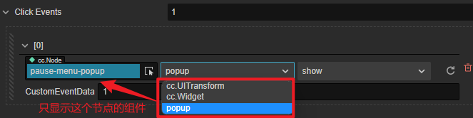 最近想实现个小工具,希望能在属性选择器中精确添加指定节点内的指定组件的指定属性,即类似于Button组件中的ClickEvents属性: