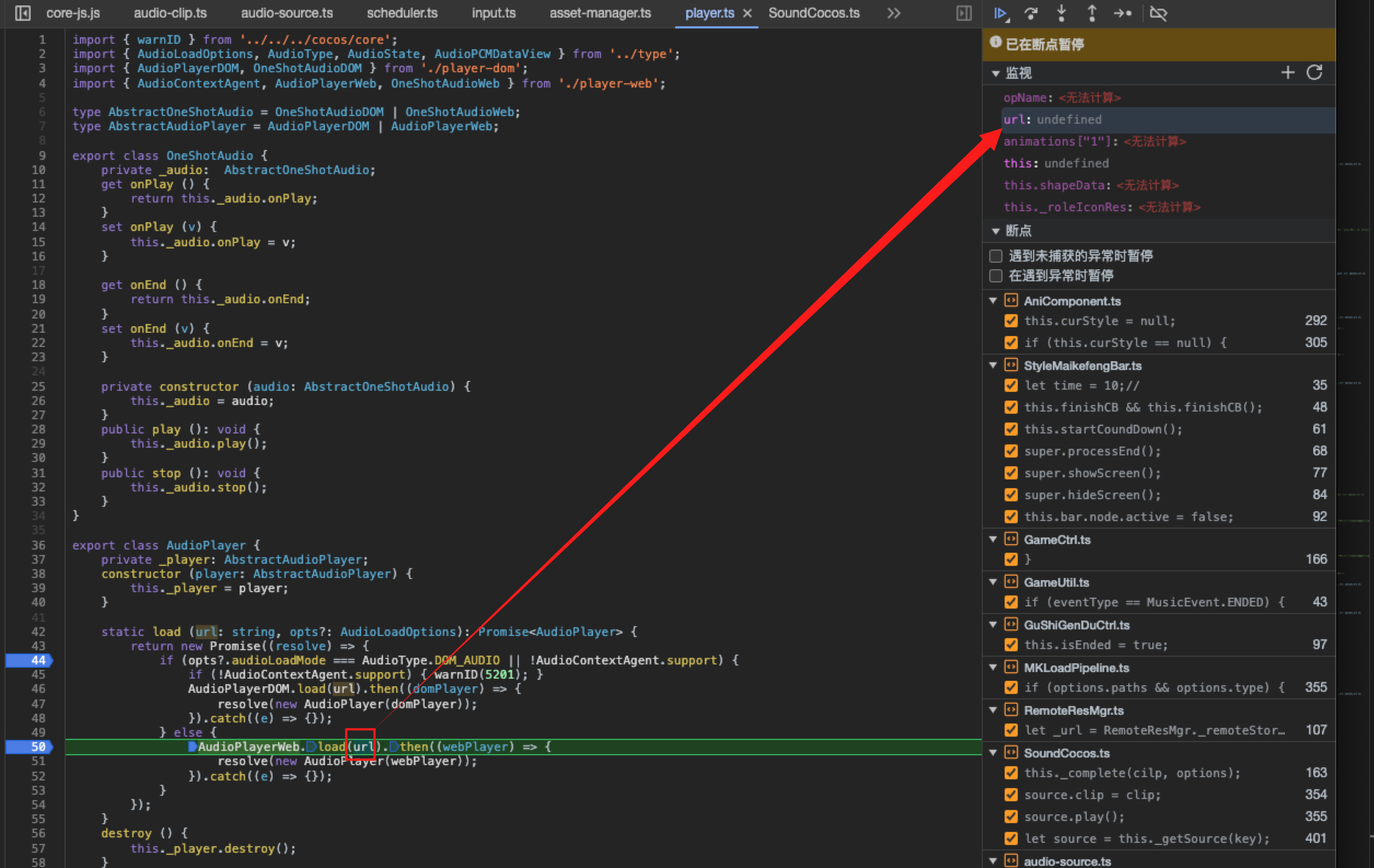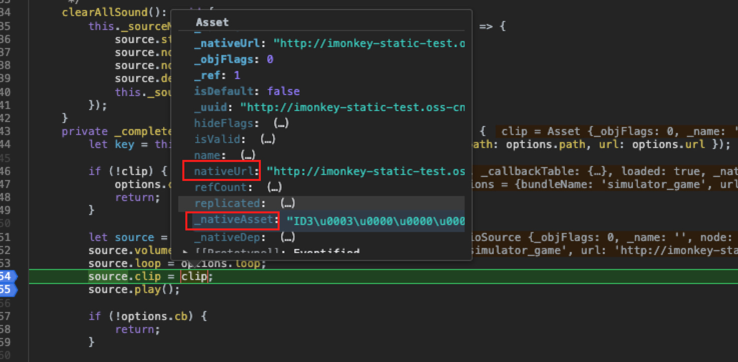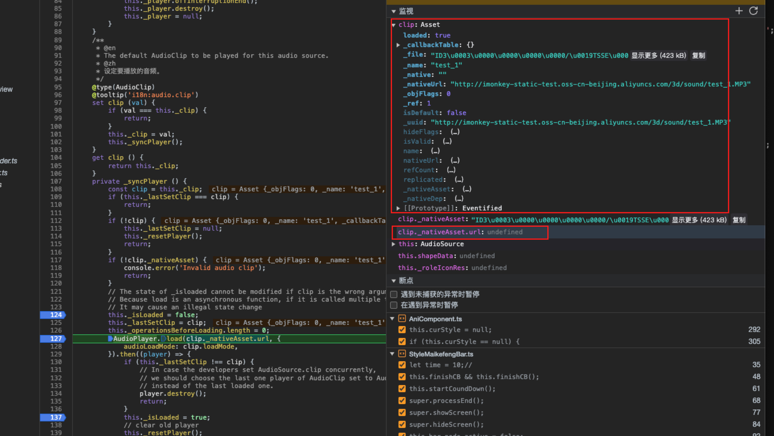 首个报错: 没有报错信息,经排查是因为 资源加载完成后去读取 clip._nativeAsset.url 这时url为undefined,奇怪的是将文件扩展名改成小写mp3后就正常了,因为上传资源的人不太注意这个扩展名,所以出现的这个问题,已经和上传资源的产品沟通 后续改成小写,这个问题有时间大佬们可以看看